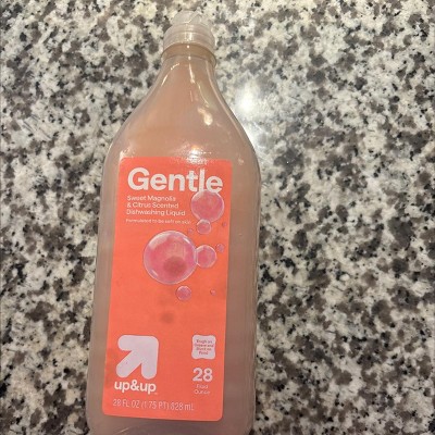 Clean dishes while keeping your skin feeling bright and healthy with this Sweet Magnolia & Citrus Gentle Clean Liquid Dish Soap from up&up™. This liquid dish soap is formulated to be gentle on skin but tough on grease and stuck-on food. The 28-fluid-ounce size gives you plenty to tackle large loads of dishes, and you're sure to love the refreshing sweet magnolia and citrus scent.