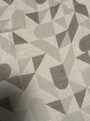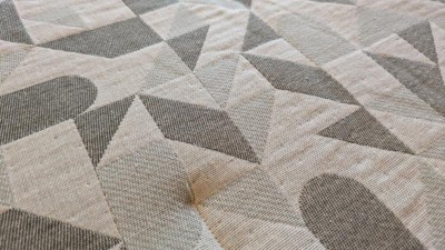• A: The bedding set features a modern geometric print with a woven jacquard fabric.