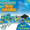 With Geography Trivia Challenge, you can test your knowledge of all things geography, earning territory tokens by answering questions correctly and avoiding setbacks on the game board. Can you rank European countries by size, largest to smallest? Or identify the color of the spot in the Japanese flag? These questions and many more await in three different categories offering up a total of 432 questions, including fun photo identification challenges. Each question card is double-sided with an advanced question on one side and a beginner on the other, so the whole family can play together, regardless of age or skill level. Players choose a level to play throughout, which helps keep an even playing field when different ages are playing against each other. Each card represents a different color and corresponds to the spaces on the board. "Know It" cards have multiple choice and true/false questions. "Name It" cards require players to identify the item in the picture shown. "Rank It" cards challenge players to put a list of geographical features in order based on criteria like size and distance. Explore your way around the board, but watch out for such hazards as earthquakes, landslides and other natural disasters! For 2 to 4 players.
