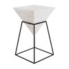 - •Minimalist inspired style of this accent table features a pyramid table top with a slender frame in an open style that allows for additional storage underneath