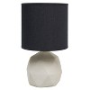 This mini lamp features a gray concrete geometric base and a black fabric shade that holds a Type B Candelabra base bulb. It is a lovely, inexpensive, and practical 10.60" table lamp to brighten up your space in style! Perfect for living room, bedroom, office, kids room, or college dorm! Please check out the additional color options that are available, to compliment your room of choice.
