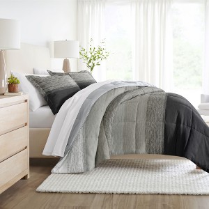 Product Name: Ombre Reversible Soft Comforter Sets, Geometric Pattern - Becky Cameron, Gray Ombre / Gray, Full/Queen