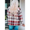 The jacket's thoughtful design includes a button front closure that allows for easy layering and styling flexibility, while large front pockets provide practical storage for your essentials. The oversized silhouette offers a relaxed, comfortable fit that works beautifully over t-shirts, thermal tops, or lightweight sweaters. Long sleeves and the generous length ensure maximum warmth and coverage, making this red plaid jacket an ideal transitional piece for unpredictable weather.