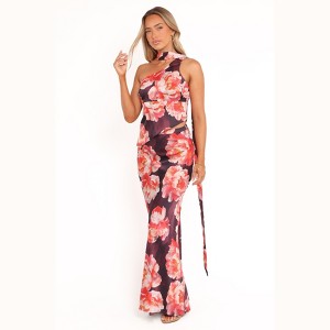 Product Name: Georgina One Shoulder Skirt Set - Burgundy Peony S