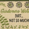 Perfect for those with a green thumb, this fun nature doormat is sure to provide an inviting welcome to guests and loved ones! Versatile green and black color palette, the botanical design features hand painted plants and flowers paired by a humorous phrase, 'Gardeners Welcome. Dirt...Not so much! Pair it with it with other items from our Geranium collection to create the perfect home decor.