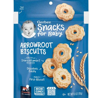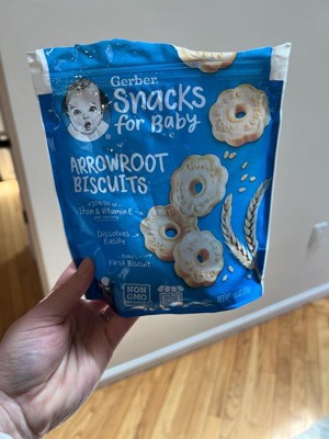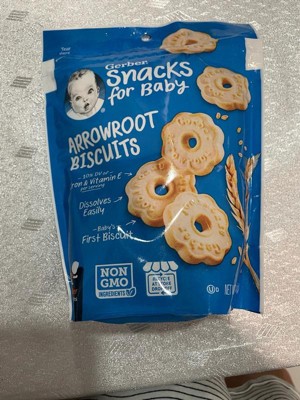 - BABY SNACKS FOR SMALL HANDS: Make snack time fun with Gerber Arrowroot Biscuits. They are the perfect baby snacks for busy parents who need a convenient option for their little one