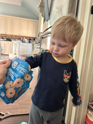 [This review was collected as part of a promotion.] We received this product free in exchange for an honest review. These cookies are delicious!! All of my kids have enjoyed them, and even my husband sneaks one or two!! They are very easy for a baby with teeth to eat and dissolve quickly. The packaging shows you exactly what you're getting and is conveniently resealable!!