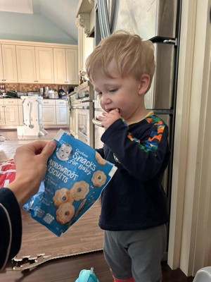 [This review was collected as part of a promotion.] A quick snack to hold baby over before lunch or dinner. Pretty tasty for mom too! These are also great for teething or dipping in yogurt. Arrowroot cookies for the win!