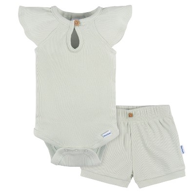 Gerber Baby Girls' Crystal Pink Bodysuit and Shorts Set, 2-Pack