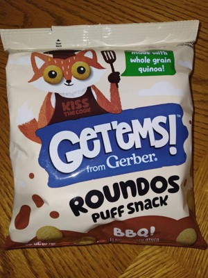 - ALL AROUND, WELL-ROUNDED YUMMY GOODNESS: Enriched with calcium and made with real whole grain quinoa, our Get’ems from Gerber BBQ Roundos Puffs Snacks offer wholesome, tasty nutrition in every munch