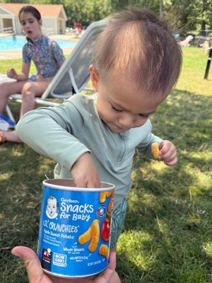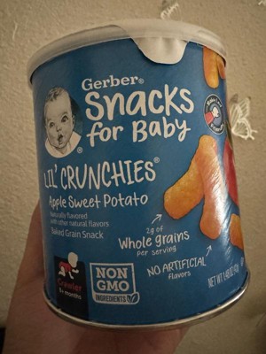 - SMILES GUARANTEED BABY SNACKS: Gerber Lil' Crunchies are thoughtfully crafted for busy parents who want to provide their little one with a nutritious on-the-go baby snack. Gerber apple sweet potato snacks offer a practical solution for parents seeking both quality and convenience.