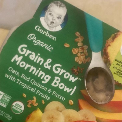 [This review was collected as part of a promotion.] The Gerber Organic Grain and Grow Morning Bowl, Oats, Red Quinoa & Farro with Tropical Fruits, 4.5 oz was a hit for my little. I already purchased some more for the laid back days. Very affordable. I recommend