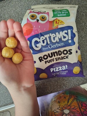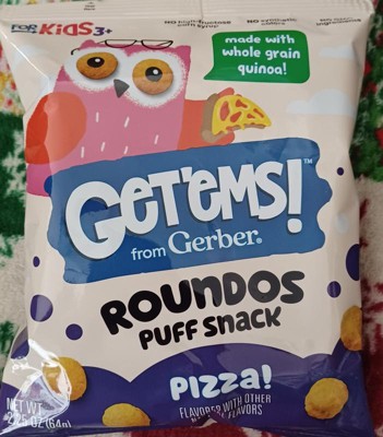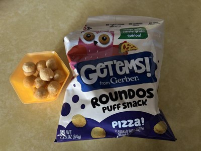 - All Around, Well-Rounded Yummy Goodness: Enriched With Calcium And Made With Real Whole Grain Quinoa, Our Get’Ems From Gerber Pizza Roundos Puffs Snacks Offer Wholesome, Tasty Nutrition In Every Munch