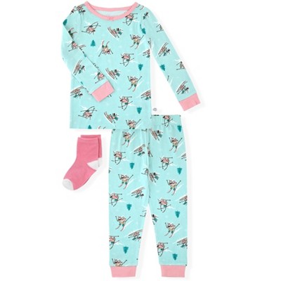 Our baby and toddler girl 2-piece pajama set is perfect for little ones who love a cute look and comfy feel! Made from soft and stretchy material, these pajamas ensure a restful night. The comfort-stretch waistband on the shorts offers a snug fit without pinching, while the soft, rounded collar provides extra comfort. Ideal for keeping cool on warmer nights, this pajama set is the perfect way to slip off to sweet dreams. Our essentials have been independently certified with STANDARD 100 by OEKO-TEX® so that you don’t have to worry about harmful substances in your baby’s wardrobe. Includes one short sleeve top with matching shorts. Flame resistant for child safety.