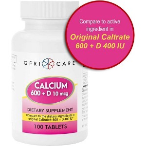 Gericare Calcium 600 + D Tablets provide essential bone‑strengthening support with a combination of 600 mg of calcium and 10 mcg (400 IU) of vitamin D for improved calcium absorption. This balanced formula helps maintain healthy bones and teeth while supporting muscle function and overall mobility. Ideal for adults looking to reinforce their bone health routine, this supplement is especially beneficial for those with low dietary calcium or limited sun exposure. The 100‑count bottle offers dependable, everyday value. Target shoppers seeking an affordable, practical calcium and vitamin D solution will appreciate this straightforward formula designed for long-term bone support and daily wellness.