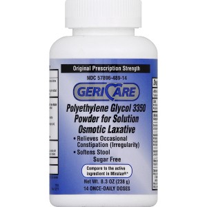 GeriCare Osmotic Laxative offers gentle, predictable relief from occasional constipation using Polyethylene Glycol 3350. This stimulant-free formula works naturally with the body by drawing water into the colon to soften stool and promote regular, comfortable bowel movements. Free from sugar, gluten, and taste, it easily dissolves in water, juice, or other beverages without altering flavor or texture. Ideal for overnight relief without urgency or cramping, this 8.3 oz bottle provides a convenient supply for maintaining digestive regularity.