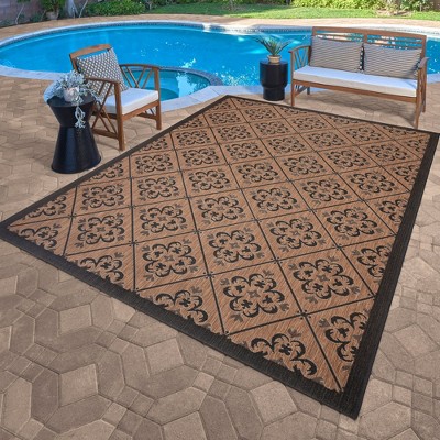 Gertmenian Paseo Niala Transitional Floral Brown Beige Flatweave Indoor Outdoor Area Rug, 6x9