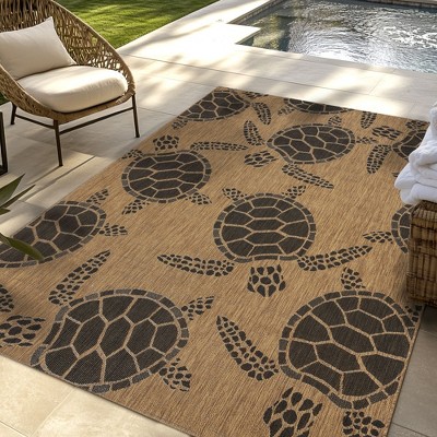 Gertmenian Paseo Niala Transitional Floral Brown Black Flatweave Indoor Outdoor Area Rug, 9x13