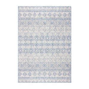 The Tropea Collection of Outdoor rugs by Gertmenian feature global motifs in stylish muted outdoor colors. The flat woven rugs are power loomed using soft yet durable 100% Olefin yarns that are UV stabilized to resist fading. The rugs are stain resistant and very easy to care for; simply wash offf with a garden hose. Precision looms create a distressed look similar to natural sisal rugs, but these rugs are inherently mold and mildew resistant, soft underfoot, will not shed fiber, and will provide years of enjoyment indoors or out.