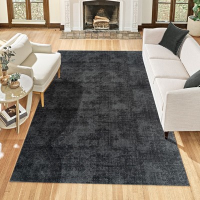 Vida Lomira Charcoal Gray Soft Polyester High-Low Carved Non-Slip Stain Resistant Easy Care Shag Indoor Area Rug, 6x9