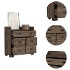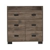 Our Boahaus Salma Dresser is one of a kind piece for your bedroom, Featuring its finish that will give you that stand out factor to your bedroom. The color of the the dresser results in a rustic design dresser, but the dark brown is a reborn trend so it will make your room look trendy. This product features one double drawer (30"W X 15"D X 5.19"H) and four single drawers with all metal rails for a lasting product life, but also a counter top that provides you a space to place decoration such as picture frames. Each small drawer has plenty of room with its 13.6 inches width X 15 inches depth X 6.10 inches height.