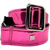 The Mirror Reflective guitar strap from Get'm Get'm Inc. features a high shine vinyl facing in a vibrant, reflective fuchsia color. Made in a fully adjustable 65" length, these American-made straps are include welded metal hardware, a nylon webbing, and real leather tips for strength and durability.