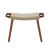 Easy living. Kick back and make yourself at home with this sleek cushioned ottoman. Crafted of solid ash with a rich walnut finish, its straightforward design has classic mid-century American appeal. The simplicity of form effortlessly complements a variety of chair styles, while its beautiful wood grain and textured upholstery make it a decorative accent all on its own. Its light weight and integrated handles make it easy to place it wherever you need it.
