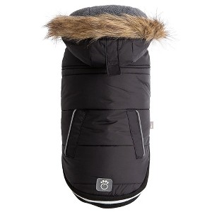The GF PET Elasto-FIT Creekside Snowsuit is the ultimate for cold weather or snow. The pants are attachable, so you can just use the jacket and add on the snow pants when needed! The pants are extendable too. Water resistent shell with warm polar fleece lining will help your dog face any weather with confidence, warmth and comfort. Reflective details for added safety. Tackable vegan fur trimmed hood and stylish faux pockets. Super adjustable, with patented Elasto-FIT technology! Great value and so many features!