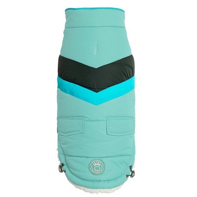 The GF PET Winter Sailor Parka is the full package. With fresh colors and a tackable vegan fur-trimmed fleece hood, this parka is the ultimate fashion statement with every bit of warmth and comfort you have come to expect from GF PET. Enjoy deep faux pockets with our signature contrast pocket tabs, and hood tabs. Turn heads at playtime or while strutting the streets, and stay warm and comfy in our luxurious popcorn pile fleece fleece lining! Water repellent and super-adjustable, with patented Elasto-fit technology! Designed for dogs who want it all!