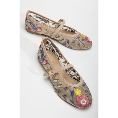 Ghent - Beige Pearl Embellished Ballet Flat Women beige 5.5 Prologue Shoes