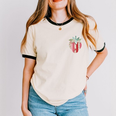 Product Name: Ghost Family Patchwork Print - Womens Ringer Tee