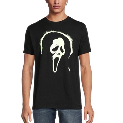 • Glow-in-the-Dark Design: This men’s graphic tee features the Ghostface mask, From Scream, across the chest in an off-white print that glows in the dark. The spray-paint style edges give the design a splattered, distressed effect that stands out no matter the time of day
