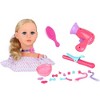 GI-GO: STYLING HEAD PLAY SET - PINK - Bring the magic of a beauty salon home with the Gi-Go Styling Head Play Set! Designed for creative minds and little hands, this gorgeous 11-inch styling head is the ultimate canvas for hair design and makeover fun. With its lifelike vinyl face and soft, rooted blonde hair, kids can brush, braid, twist, and style to their heart’s content—over and over again. She has sparkling blue eyes that add even more charm to her lifelike look. This all-in-one salon experience comes packed with everything a young stylist needs. Featuring 11 vibrant hair clips, colorful ribbons, and decorative hair beads, kids can experiment with endless looks. The included salon brush and mirror add realistic flair, while the working blow dryer with sound brings the whole playset to life—making every styling session feel just like the real thing. Perfect for aspiring hairstylists, makeover enthusiasts, and kids who love hands-on play, the Gi-Go Styling Head is more than just a toy—it's a doorway to imagination, expression, and fun-filled fashion adventures. Whether it’s a solo session or a styling party with friends, this playset makes every moment fabulous!