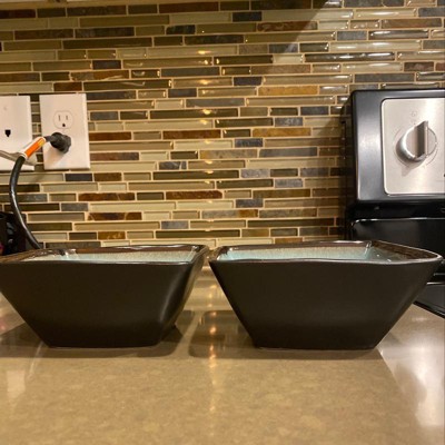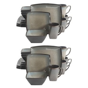 Gibson 16 Piece Square Dinnerware Set with Plates, Bowls, and Mugs (2 Pack)