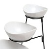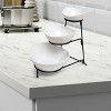 The Gibson 3 Tier Bowl Server Set with Metal Stand Serveware stylizes the table with its modernized look. This decorous Gracious Dining three tier bowl server set is composed of three fine ceramic dishes and a sturdy metal stand. The white ceramic look draw attention as it's held by the black metal frame.