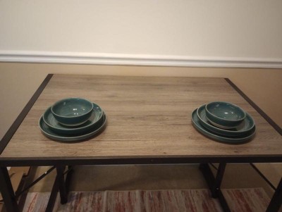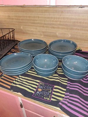 Gibson Elite Clarina 16 Piece Double Bowl Stoneware Reactive Glaze Round Plates and Bowls Dinnerware Set - Teal