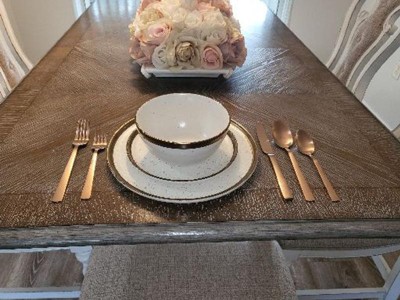Wanted a 12 piece serving set but ordered a 4 peice as precaution based on the only review posted here (1 star). But having searched for a beautiful bronze color to match dishes, yet needing a beer pocket price, the image/description seemed possible, but maybe a risk. I took a faith leap anyway and SO GLAD I DID! The set is overall BEAUTIFUL! Color is a lovely bronze, very sturdy, perfect weight in hand, polished smooth, and BEST of all... they match my dinnerware! I was SO delighted, I ordered 2 more sets with bated breath! They arrived quickly, well packaged and just the same as first set. There is 1 peice with a small scratch on the side, but deep enough it shows silver that I wish I could replace but would have to return the entire 4 piece set to Target and re-order another in hopes all pieces will be perfect. Maybe the company will see this review and be kind enough to replace just the one piece as a courtesy? That would be amazing customer service :) You can't win if you don't play, and you won't know unless you try... try I did, and for me, it's a WIN too!