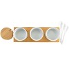 The Gibson Elite 10 piece condiment jars set is designed with sophisticated style that brings character and richness to the table. The classic design blends seamlessly with a wide array of colors and motifs, perfectly fitting in to your home and kitchen decor. Set comes with three condiment jars with bamboo lids and a bamboo base that keeps everything in place- great for keeping at the center of your table for family meals and special occasions. Each jar comes with a small serving spoon for easy access. Jars are dishwasher and microwave safe.