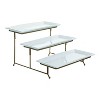 Gibson Elite Gracious Dining Ceramic 3 Tier Rectangular Serving Platter, Appetizer Dessert Stand, Food Server Tray Display, Gold (2 Pack)