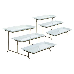 - AMPLE SPACE: Includes 6 rectangular 12-inch platters and 2 tiered stands; Color: Gold