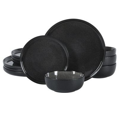 Gibson Elite Malibu Shore 16 Piece Scallop Stoneware Reactive Glaze Service for 4 Ceramic Plates and Bowls Dinnerware Set