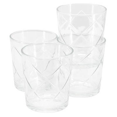 This four 16 Ounce drinkware set is designed with an iceberg diamond shaped embossed exterior that sparkles with brilliance and clarity. Perfect for serving iced teas, cocktails, or any beverage of your choice, each piece complements any style of table setting. Whether you are celebrating with friends or enjoying a casual drink, this set will add a special touch to the occasion. Durable glass construction is dishwasher safe for easy cleanup.