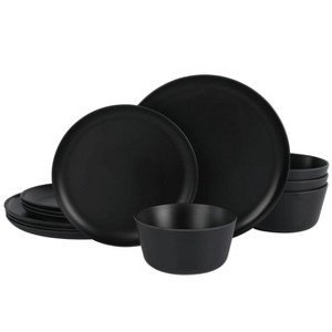 Enhance your dining experience with the Gibson Home Fairhope 12 Piece Melamine Round Dinnerware Set in Matte Black. Perfect for both casual meals and special occasions, this set combines style and durability with its sleek matte black finish. Crafted from high-quality melamine, each piece offers the elegant look of ceramic without the fragility. The set includes four dinner plates, four salad plates, and four bowls, all designed to withstand everyday use and dishwasher-safe for easy cleanup. Whether you're hosting a dinner party or enjoying a quiet meal at home, the Gibson Home Fairhope set adds a touch of sophistication to any table setting.