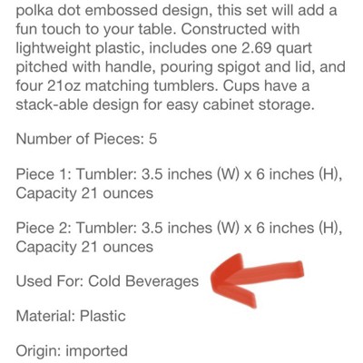 Hello, The Gibson Home Malone pitcher and tumbler set is the perfect lightweight drinkware set for indoor and outdoor occasions and can be used for Cold Beverages. Thank you for shopping with us! Sincerely, Consumer Relations Team