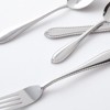 Take your next dining occasion to a new level of prestige with the New Wilmington 24-piece flatware set from Gibson Home. This stainless steel set has rounded handles with fringed edges that are as pleasing to the touch as they are to the eye. Bring this beautiful flatware set home today! Set Includes: Six 8.25 in. Dinner Knives Six 7.25 in. Dinner Forks Six 7 in. Dinner Spoons Six 6 in. Teaspoons