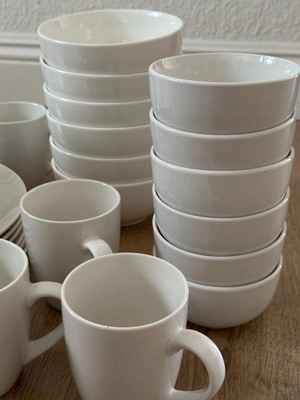 [This review was collected as part of a promotion.] Nice looking white dishes. Not too heavy. Good quality, easy to use in the microwave. They don't get too hot. Washed well in the dishwasher. The coffee cups are a good size, not too heavy, handle isn't too thick or thin. I was pleasantly suprised with these dishes. They are now in my daily rotation of dishes