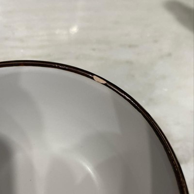 I ordered the Gibson blue stoneware with the gold trim. Lovely but dark spots appear on the trim when used in the microwave. Unsightly to see black spots here and there. I’m sure it’s areas missed during baking the stoneware. Very disappointed.