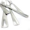 Includes: four 6 in. salad forks, four 7.25 in. dinner forks, four 8 in. dinner knives, four 7 in. dinner spoons, four 5.75 in. teaspoons, one 8.5 in. serving fork, one 8.25 in. serving spoon, one 6.5 in. butter knife, and one 5.5 in. sugar shell