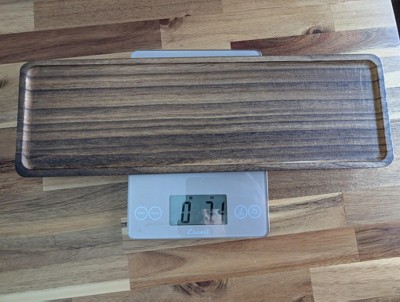 Should have read the materials and details section. this is such garbage. it's not acacia and I doubt it's even pine by the description. I don't believe any of it is food safe considering. this is 17" long and putting the largest piece on the scale seems far too light for pine. this thing is junk and being returned