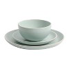 Gibson Rockaway 12 Piece Stoneware Dinnerware Set, Plates & Bowls, Matte Teal